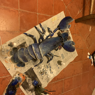 I went outside to paint the lobster, and prime it. I did not have many options for trimming except a white pot of paint for house walls. I figured that would be strong enough.